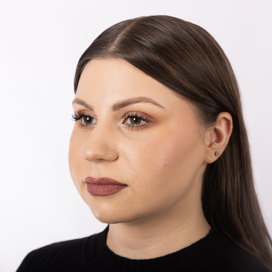 High Arched Brows: High arched eyebrows can beautifully elongate a round face by drawing the eyes upward. This shape creates vertical lines that help to counterbalance the horizontal width of the face, giving it a more elongated appearance. Be sure to maintain a gradual arch to avoid an overly dramatic effect.