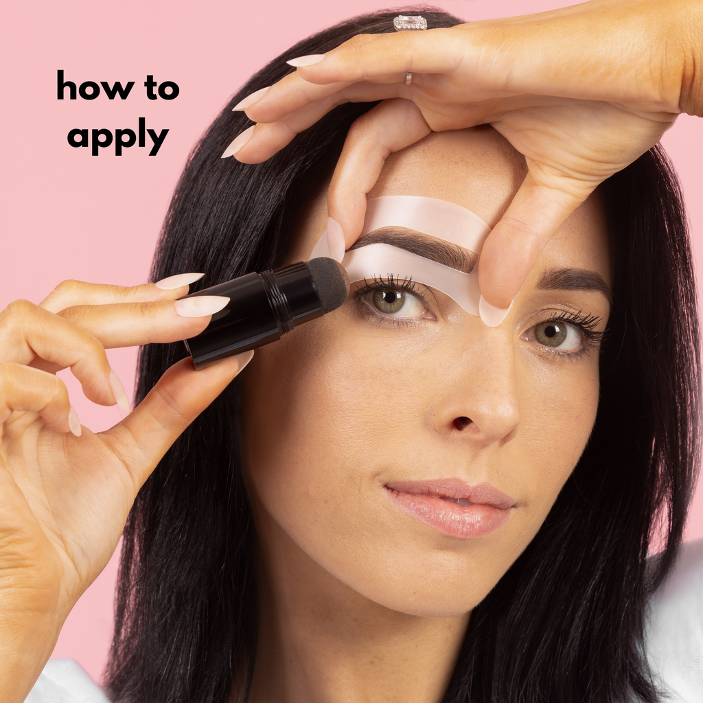 1. Select Stencil: Choose the stencil that best fits your natural brow shape and align it in position. Secure it firmly with your thumb and index finger. 2. Prep Powder: Lightly dab excess powder onto a tissue before application. 3. Stamp Brows: Gently stamp the powder along the stencil, starting from the tail and moving towards the front. Leave the front lighter for a natural, ombré effect. Repeat: Wipe off excess powder, flip the stencil, and repeat the process on the other eyebrow.